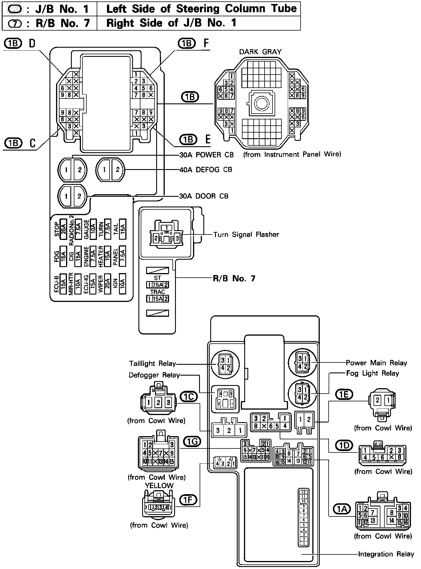 Locations-J/B No.1 Left Side Of Steering Column Tube, R/B No.7 Right Side Of J/B No.1 (Fig 20):