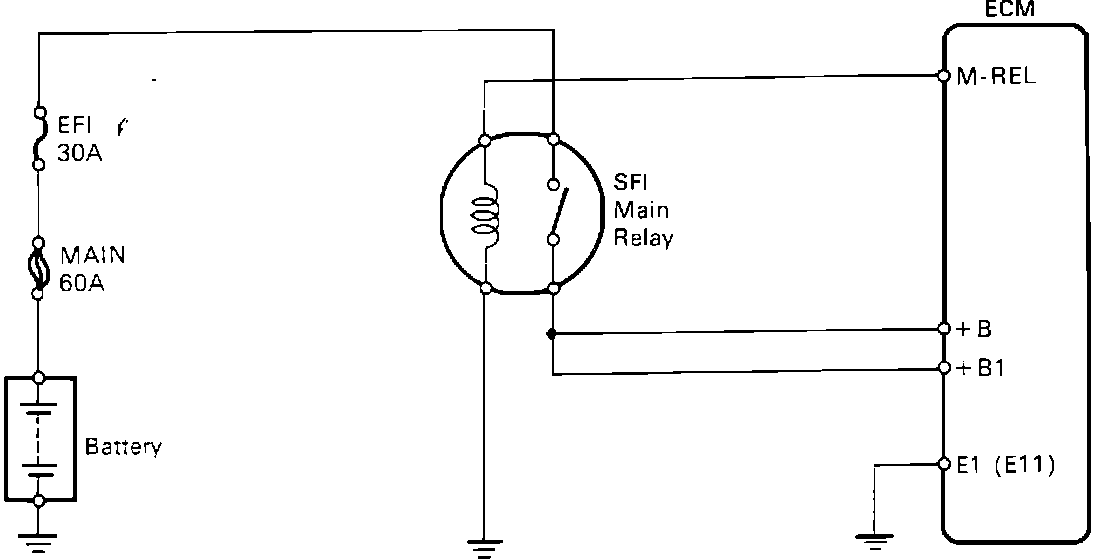 The SFI main relay controls the ECM power supply.