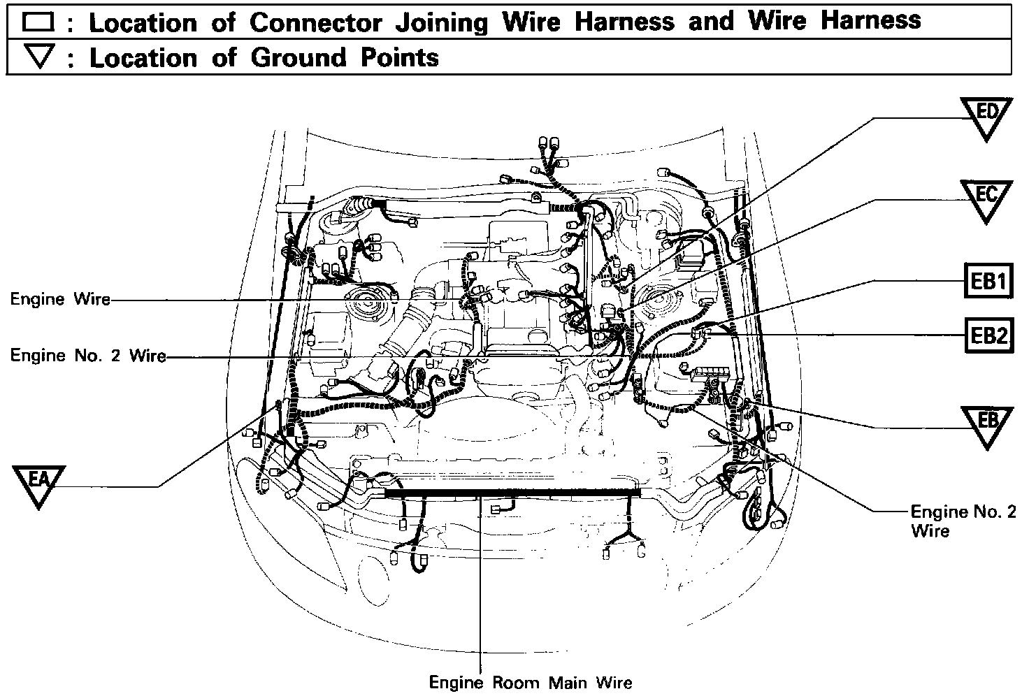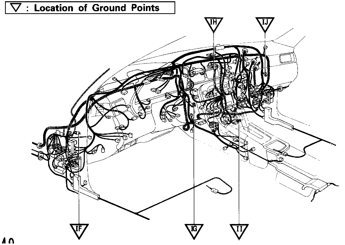 Location Of Connector Joining Wire Harness And Wire Harness Ground Points (Fig 38):