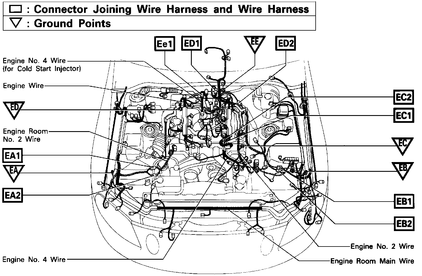 Location Of Connector Joining Wire Harness And Wire Harness Ground Points (Fig 36):