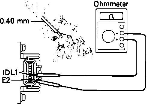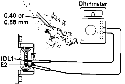 - Connect the test probe of an ohmmeter to the terminals IDL1 and E2 of the sensor.