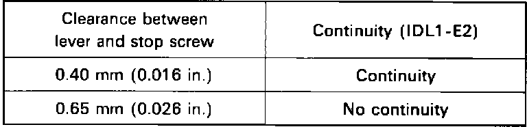 - Insert a 0.40 mm (0.016 in.) feeler gauge, between the throttle stop screw and stop lever.