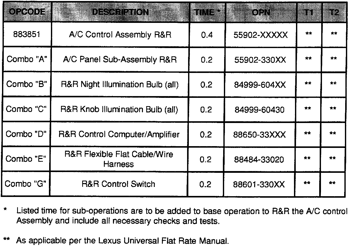 1992-1995 ES 300 A/C CONTROL ASSEMBLY SERVICE PARTS