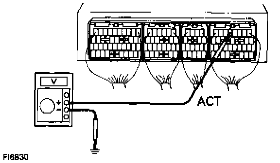 - Measure voltage between terminal ACT of Engine Control Module connector and body ground when A/C switch is turned to ON and OFF.