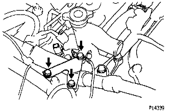 - Remove the 2 bolts, 2 nuts, 2 plate washers and water outlet.