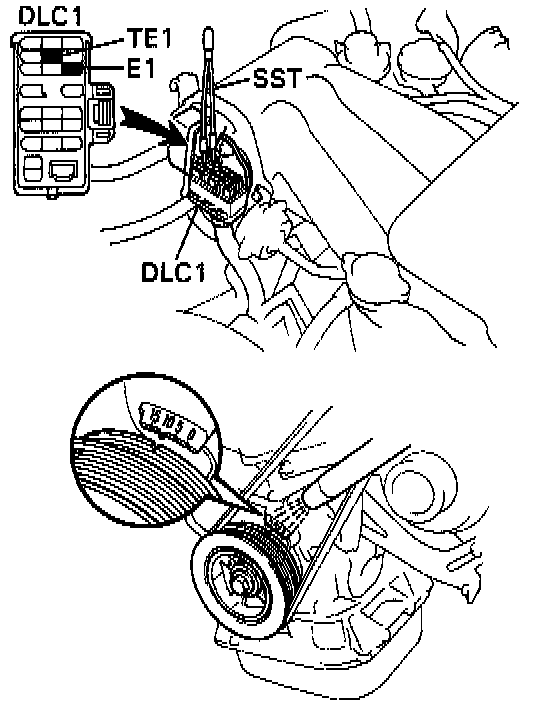 - Using jumper connect terminals TE1 and E1 of Data Link Connector 1. (SST 09843-18020)