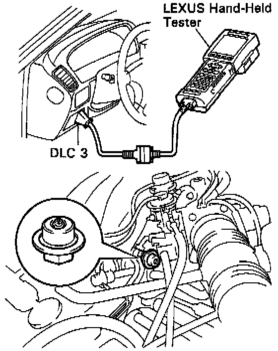 - Connect the TOYOTA hand held tester to the Data Link Connector 3 on the vehicle.