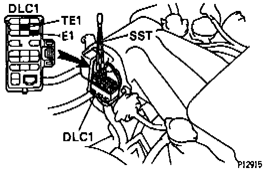 - Using jumper, connect terminals TE1 and E1 of the Data Link Connector 1 (SST 09843-18020).
