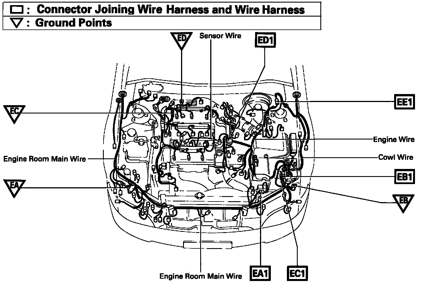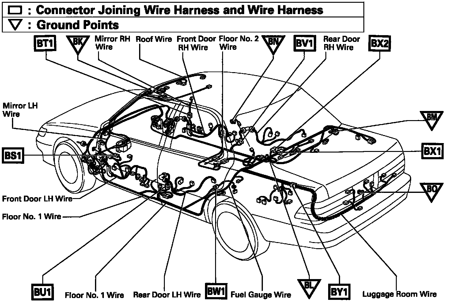 Location Of Connector Joining Wire Harness And Wire Harness Ground Points (Fig 40):