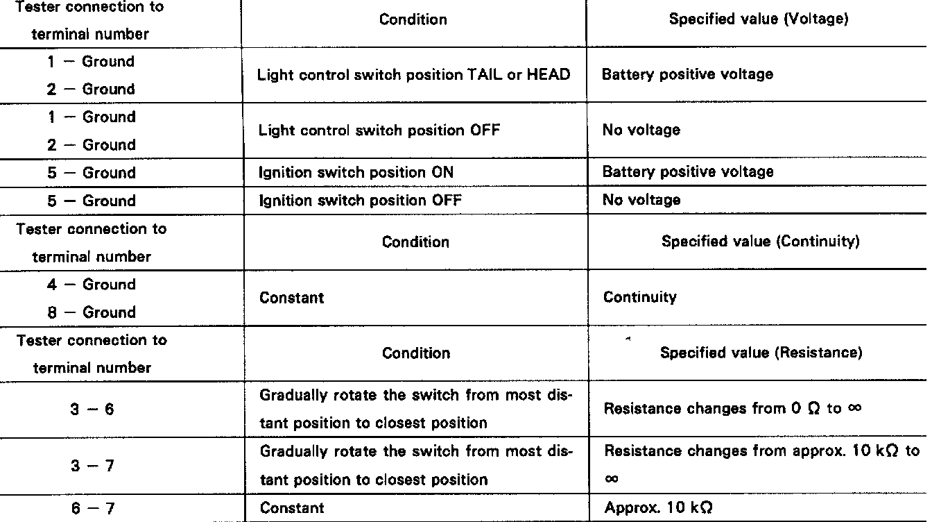 RHEOSTAT LIGHT CONTROL INSPECTION