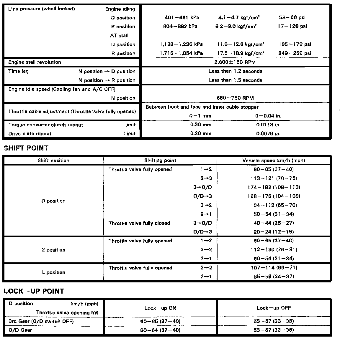 A541E 5-spd A/T, Line Pressure / Shift Point: