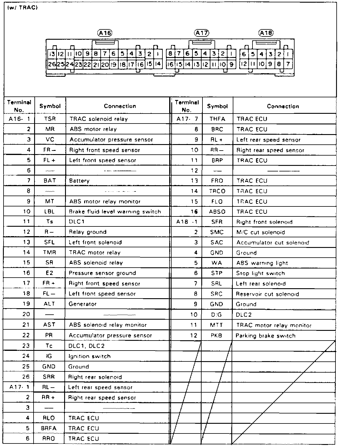 Fig. 24 ABS & TRAC ECU Terminal Identification: