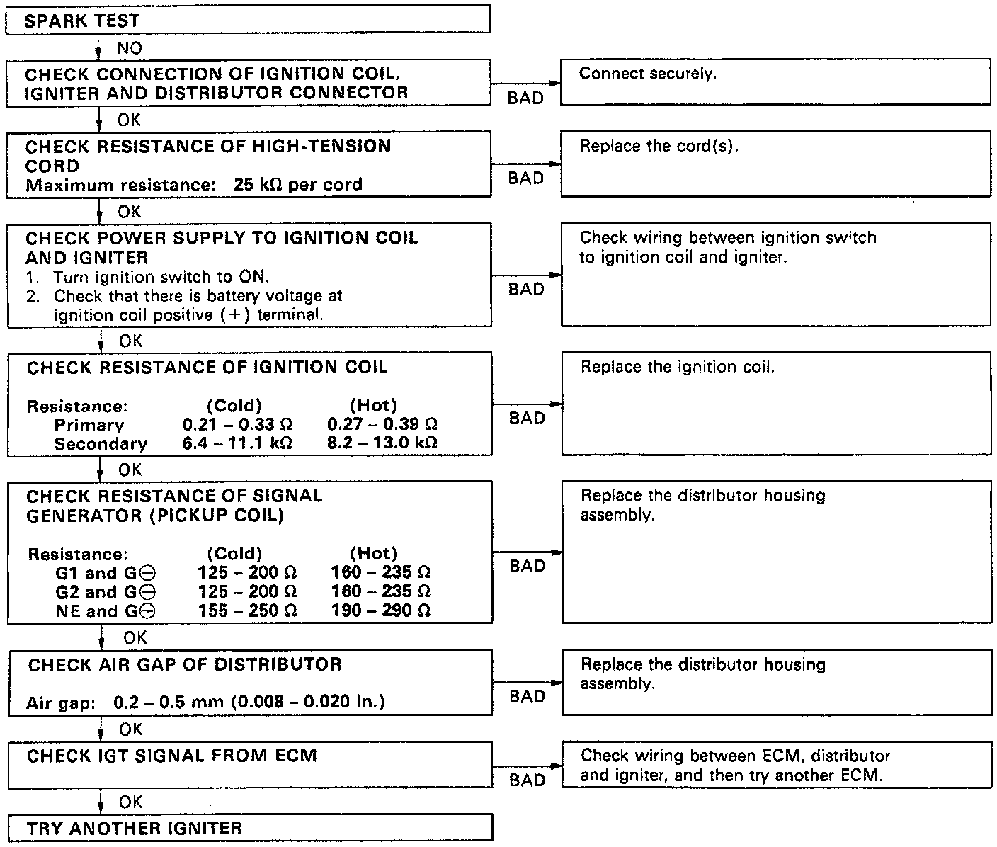NOTE: This is a test of the Ignition circuit. As there is no component test of the Igniter itself, a process of elimination is used to find if the Igniter is at fault.