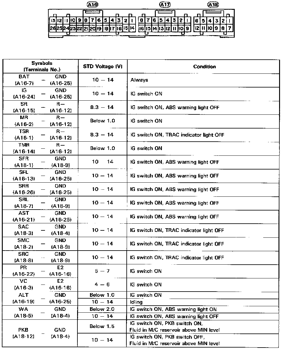 Fig. 25 ABS & TRAC ECU Terminal Values (Part 1 Of 2):