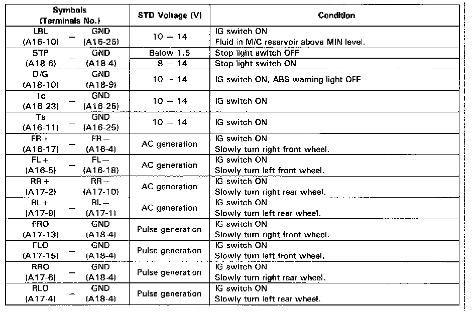 Fig. 25 ABS & TRAC ECU Terminal Values (Part 2 Of 2):