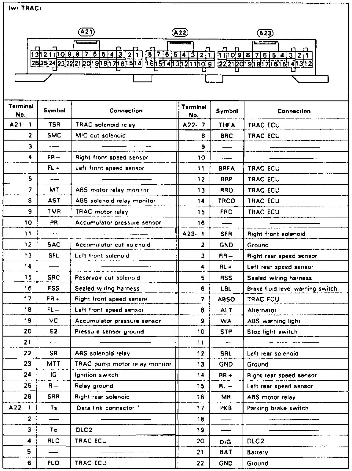 Fig. 32 ABS & TRAC ECU Terminal Identification: