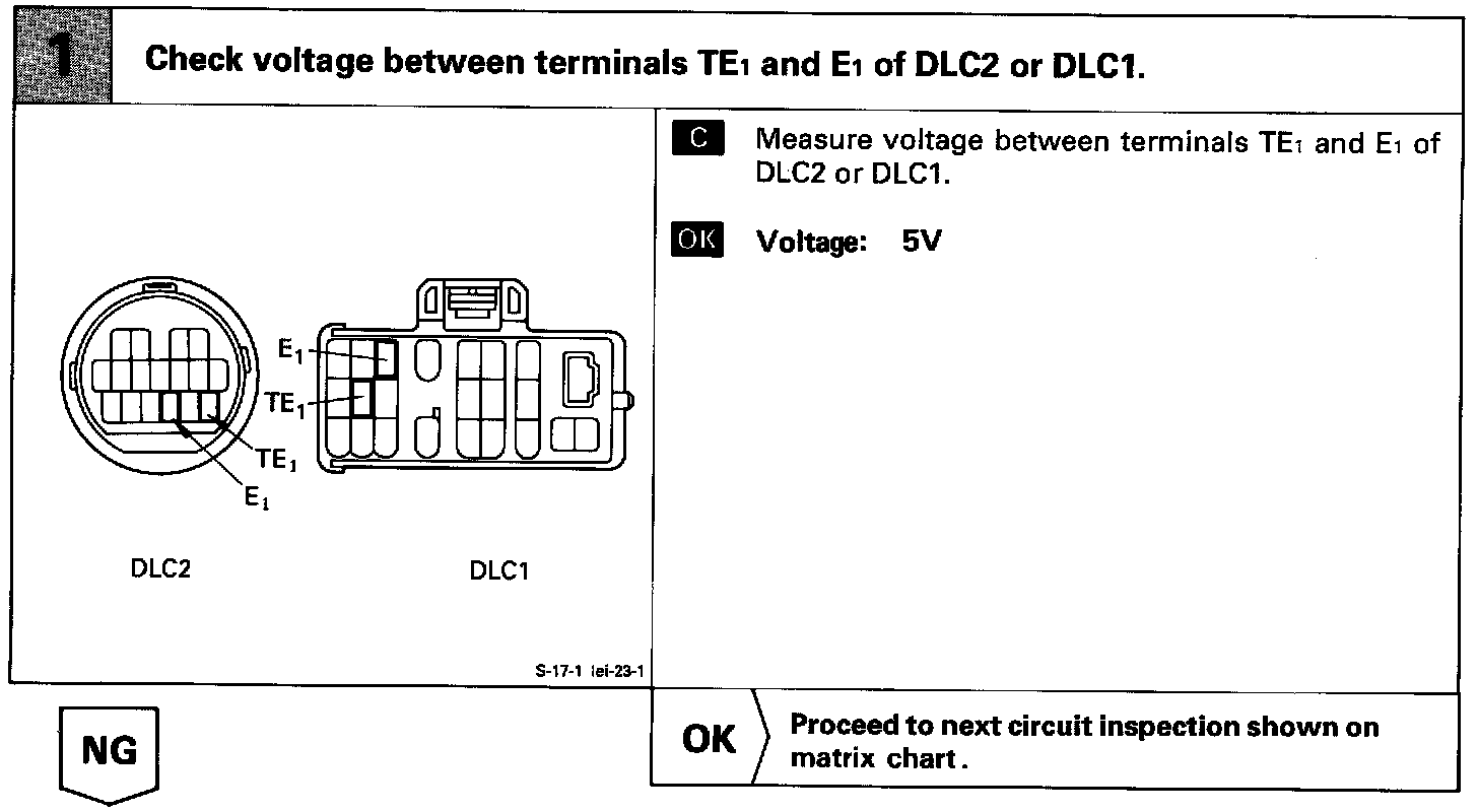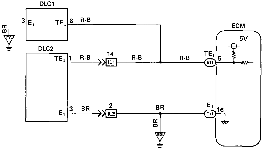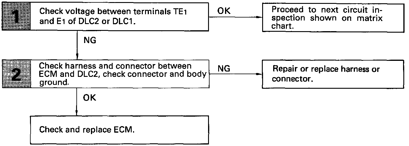 CIRCUIT DESCRIPTIONThe Engine Control Module (ECM) displays diagnostic trouble codes using the 0/D OFF indicator light when terminals TE1 and E1 of the DLC2 or DLC1 are connected.