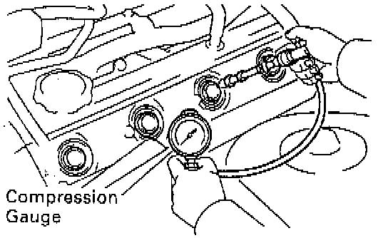 ^ If the cylinder compression in one or more cylinders is low, pour a small amount of engine oil into the cylinder through the spark plug hole and repeat steps (a) through (c) for cylinders with low compression.