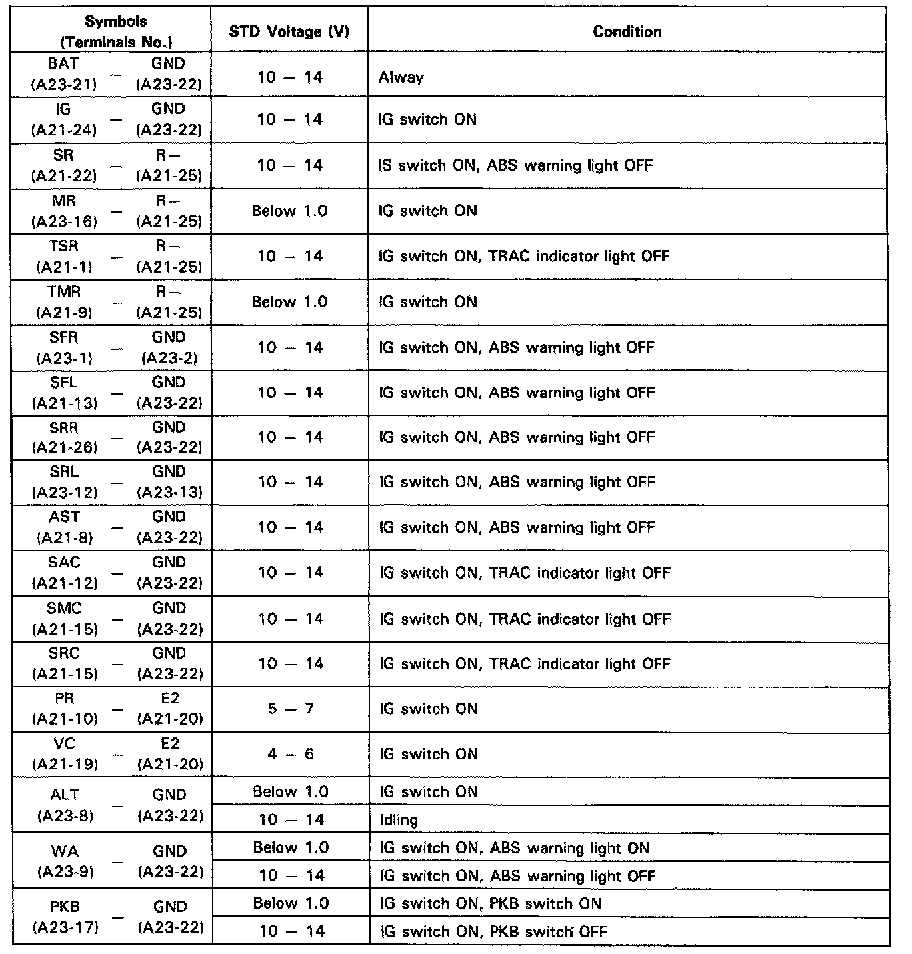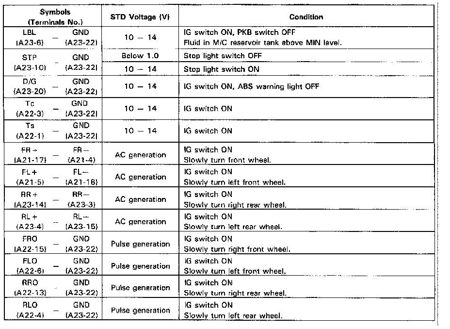 Fig. 33 ABS ECU Terminal Identification & Values (Part 2 Of 2):