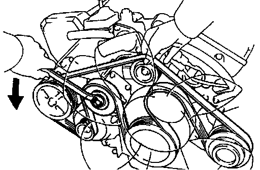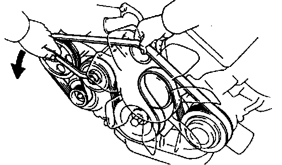 Loosen the belt tension by turning the drive belt tensioner counterclockwise,and remove the drive belt.