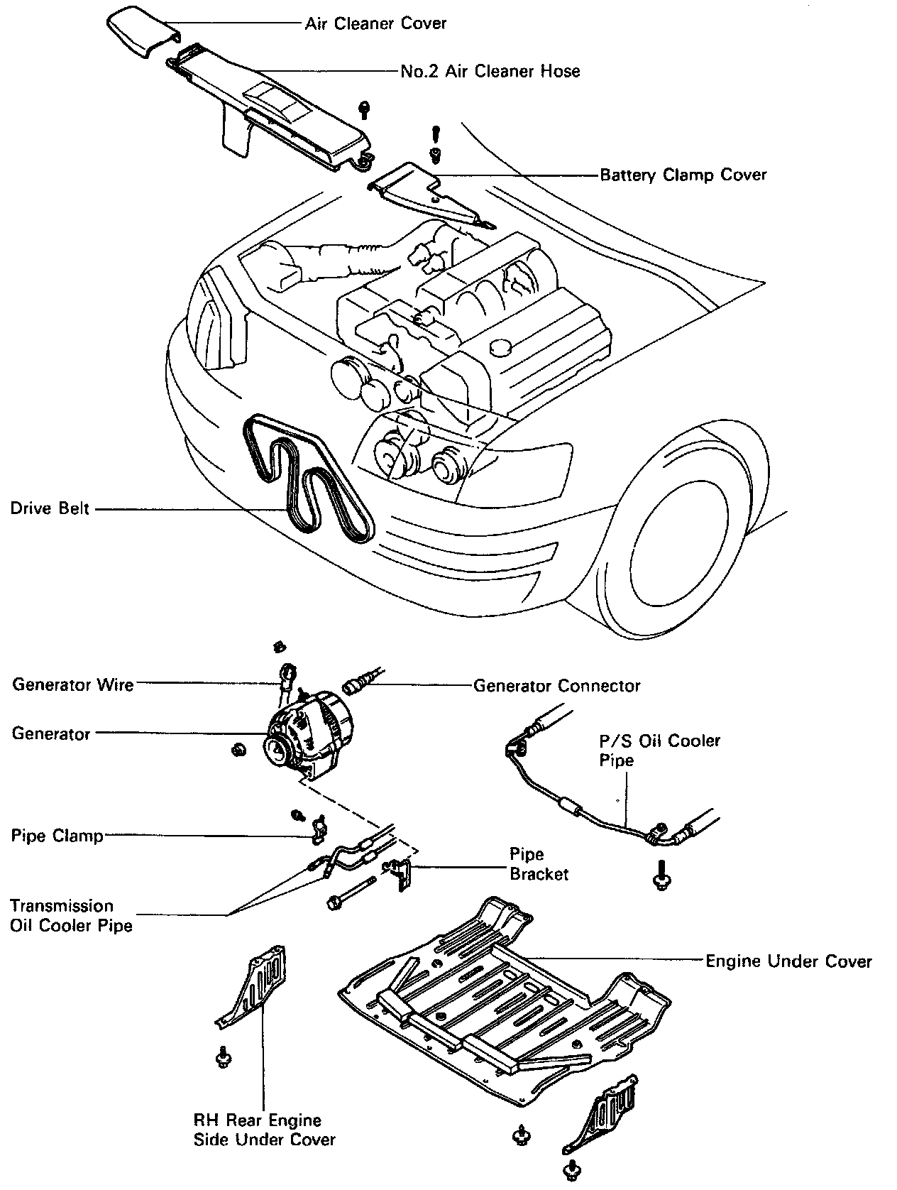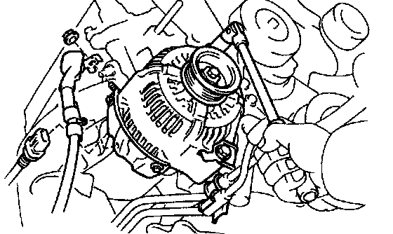 (b) Remove the rubber cap and nut, and disconnect the generator wire.