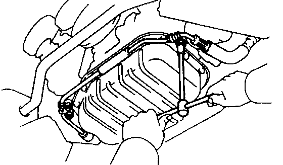 8. DISCONNECT POWER STEERING (P/S) OIL COOLER PIPE FROM OIL PAN