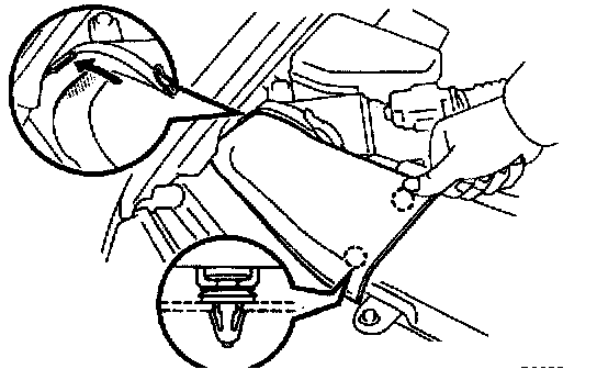 (b) Disconnect the two claws of the battery clamp cover from the hole of the upper radiator support and the end of the No.2 air cleaner hose.
