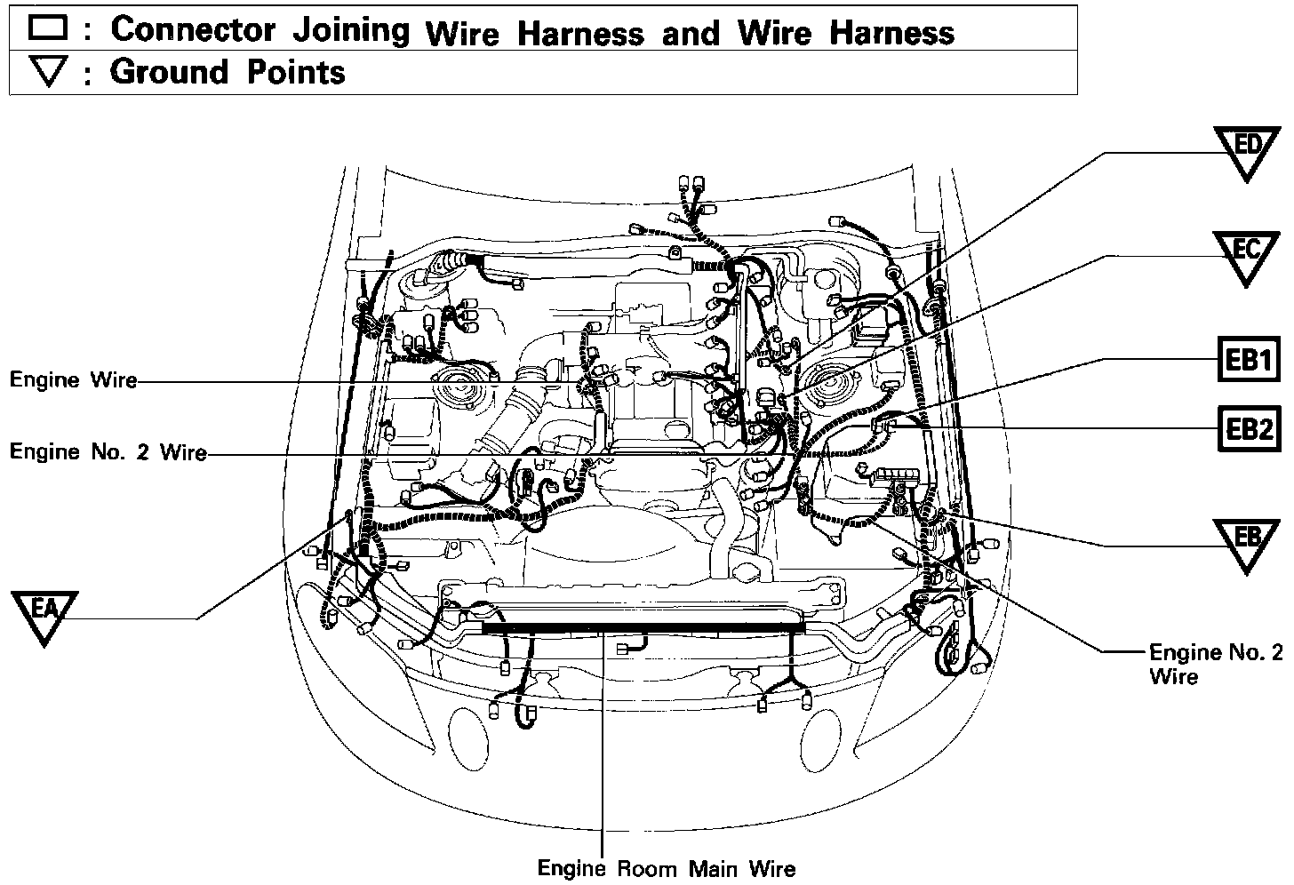 Location Of Connector Joining Wire Harness And Wire Harness Ground Points (Fig 38):