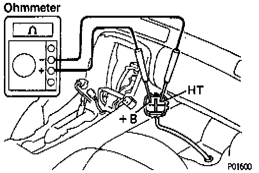 - Using an ohmmeter, measure the resistance between the terminals +B and HT.