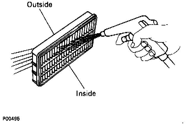 - If necessary, clean the air filter with compressed air. First blow from inside thoroughly, then blow off outside of the air filter.