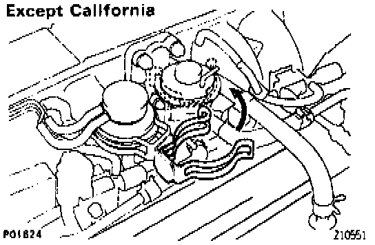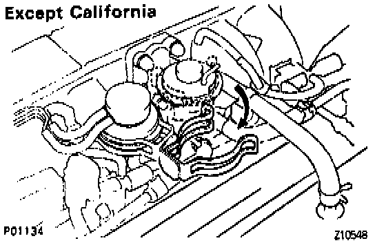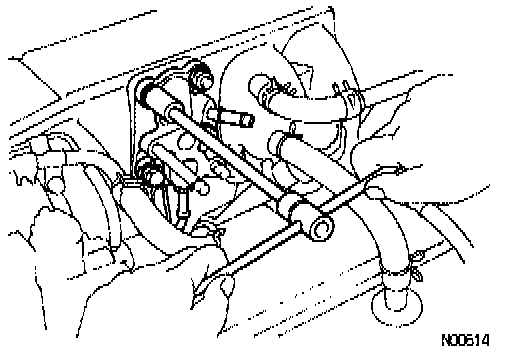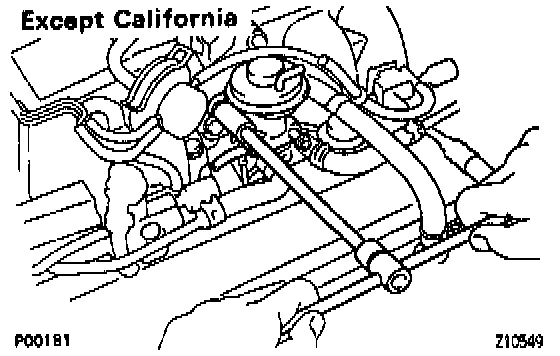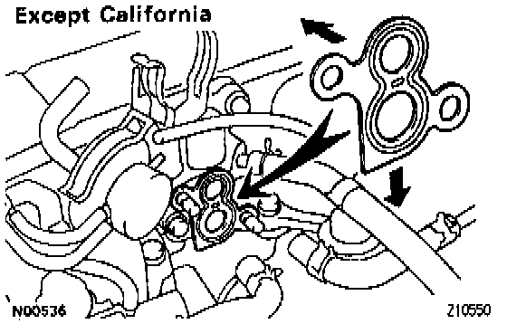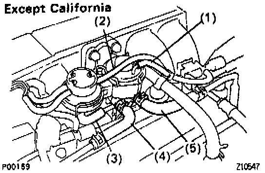 - Water bypass hose (from idle air control valve) from exhaust gas recirculation valve. (4)