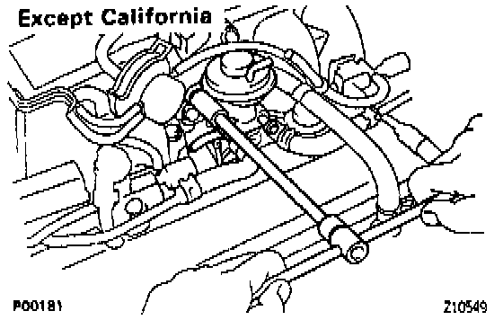 - Vacuum hose (from port G of vacuum switch valve) from exhaust gas recirculation vacuum modulator. (2)