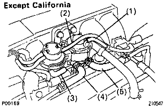 - Water bypass hose (from rear water bypass joint) from exhaust gas recirculation valve. (5)