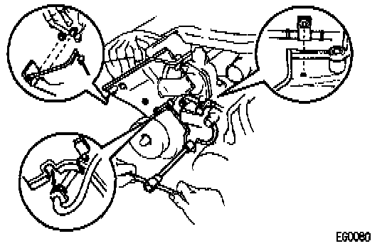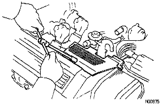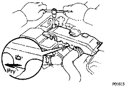 - Remove the 2 bolts, and disconnect the VSV from the cylinder head cover and timing belt cover.