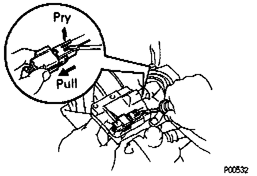 - Disconnect the intake air connector from the throttle body and air cleaner hose, and remove the intake air connector.