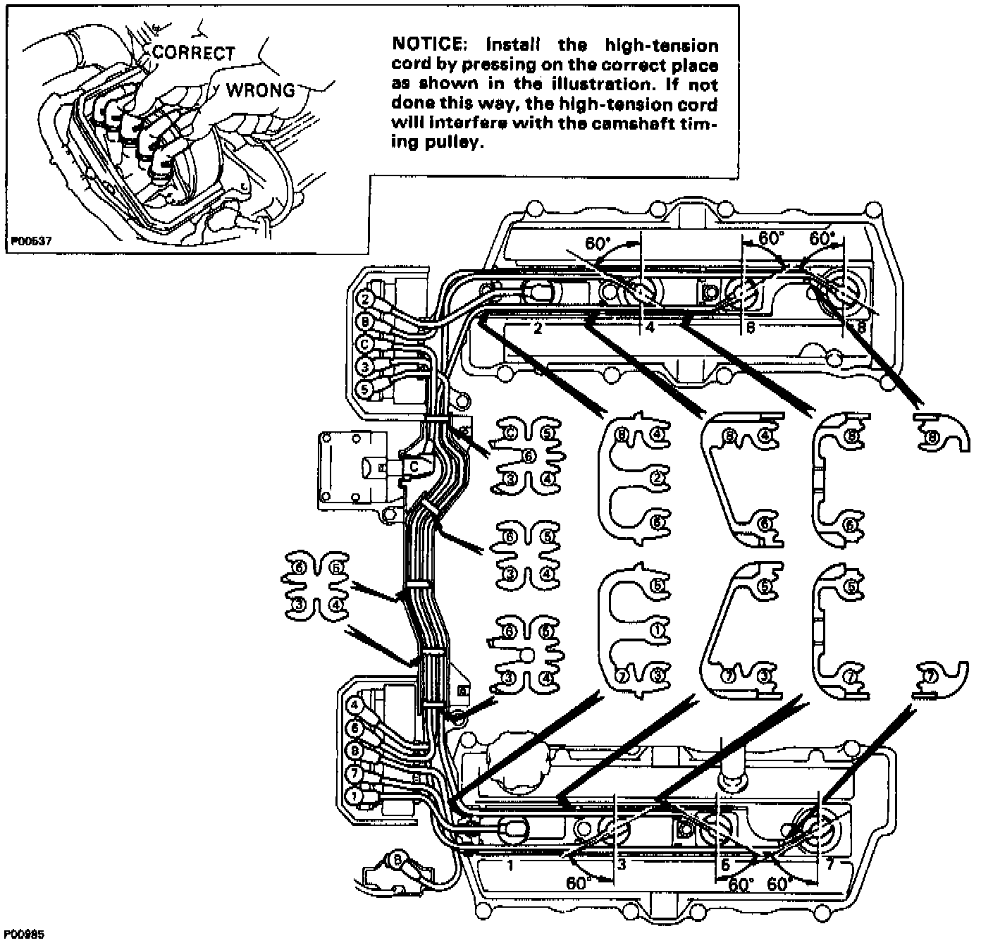 - Connect the high - tension cords to the spark plugs and distributor caps.