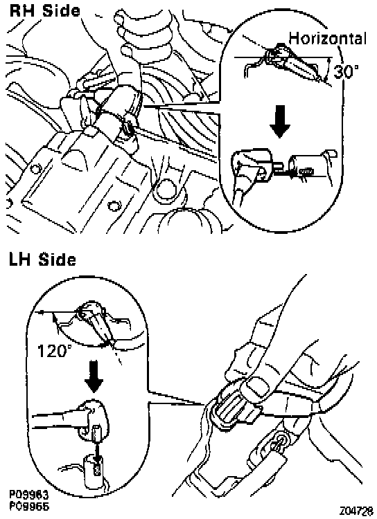NOTE: Check that holder is correctly installed to the grommet and ignition coil as shown in the illustration.