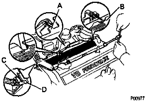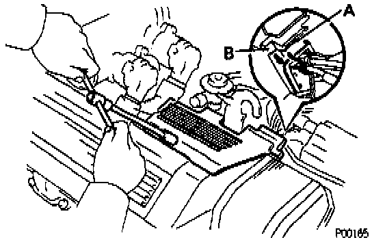 - Connect portions A and B of the engine wire cover to the wire brackets.