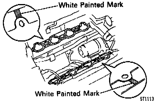 - Place 2 new gaskets on the cylinder heads with the white painted mark facing upward.