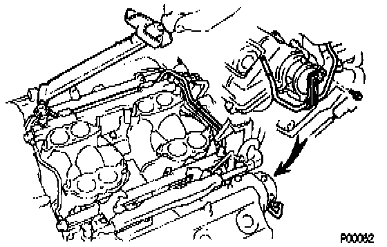 7. Temporarily install exhaust gas recirculation pipe to right hand cylinder head with the bolt.