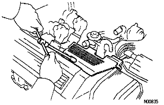 - Disconnect the intake air connector from the throttle body and air cleaner hose, and remove the intake air connector.