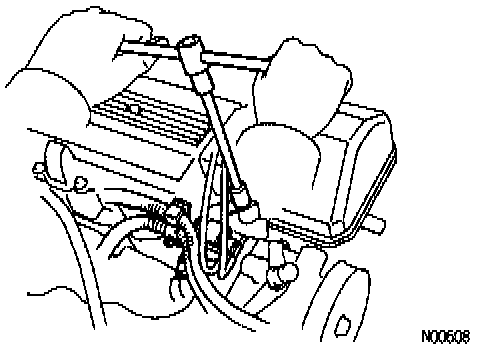- Remove the 2 bolts, and disconnect the engine wire from the intake manifold.