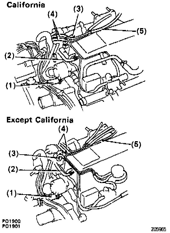 - 2 vacuum hoses (from vacuum switching valve for evaporative emissions) from vacuum pipe (4)