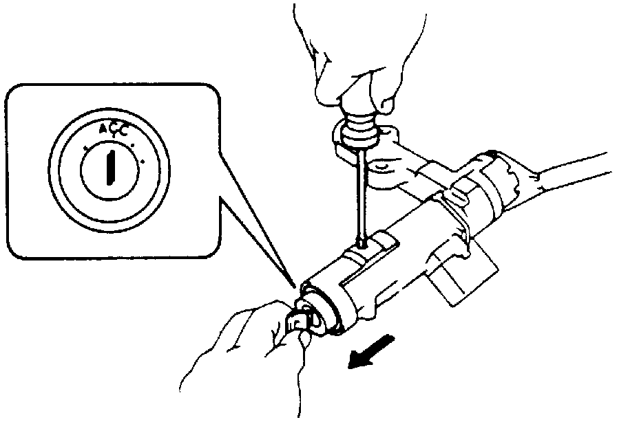 3. Push down stop key, Fig. 11, then pull out lock cylinder.