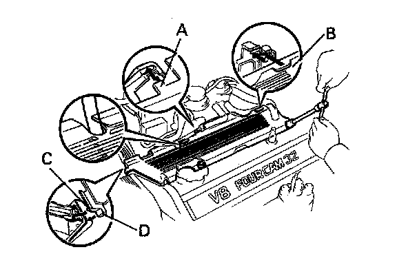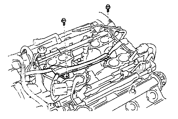 (d) Install the engine wire to the rear water by-pass joint with the two bolts.