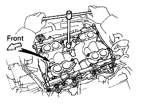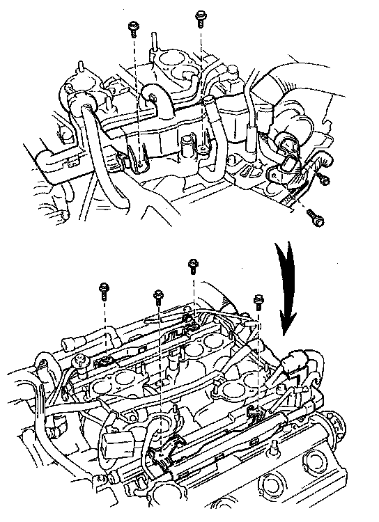 (b) Place the delivery pipes and intake manifold assembly in position on the cylinder heads with the arrow mark on the intake manifold facing forward.