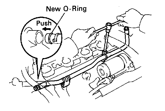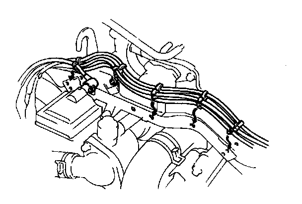 (e) Install the engine wire to the delivery pipes with the four bolts.