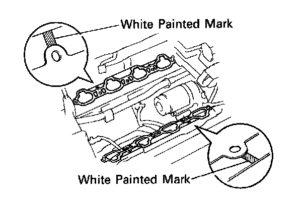 (a) Place two new gaskets on the cylinder heads with the white painted mark facing upward.