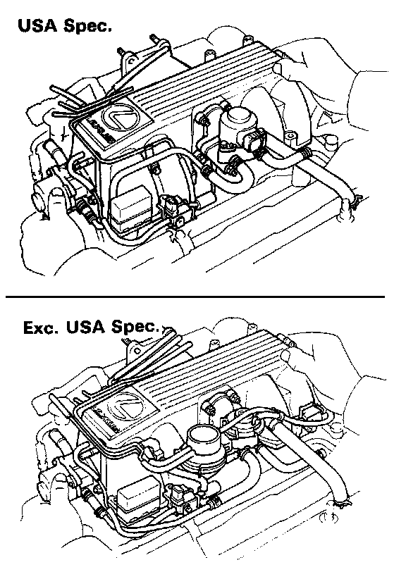 (8) Two vacuum hoses (from VSV for EVAP system) to vacuum pipe