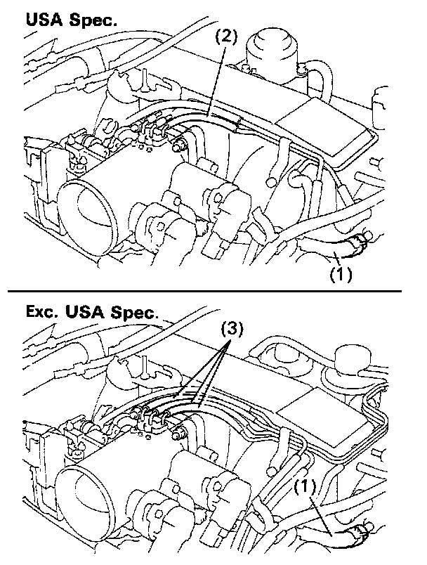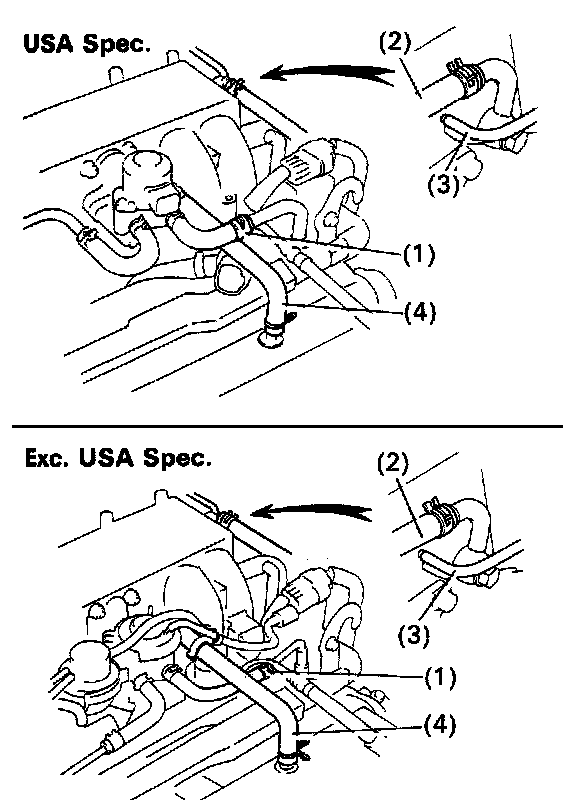 (7) Vacuum sensing hose (from fuel pressure regulator) to vacuum pipe